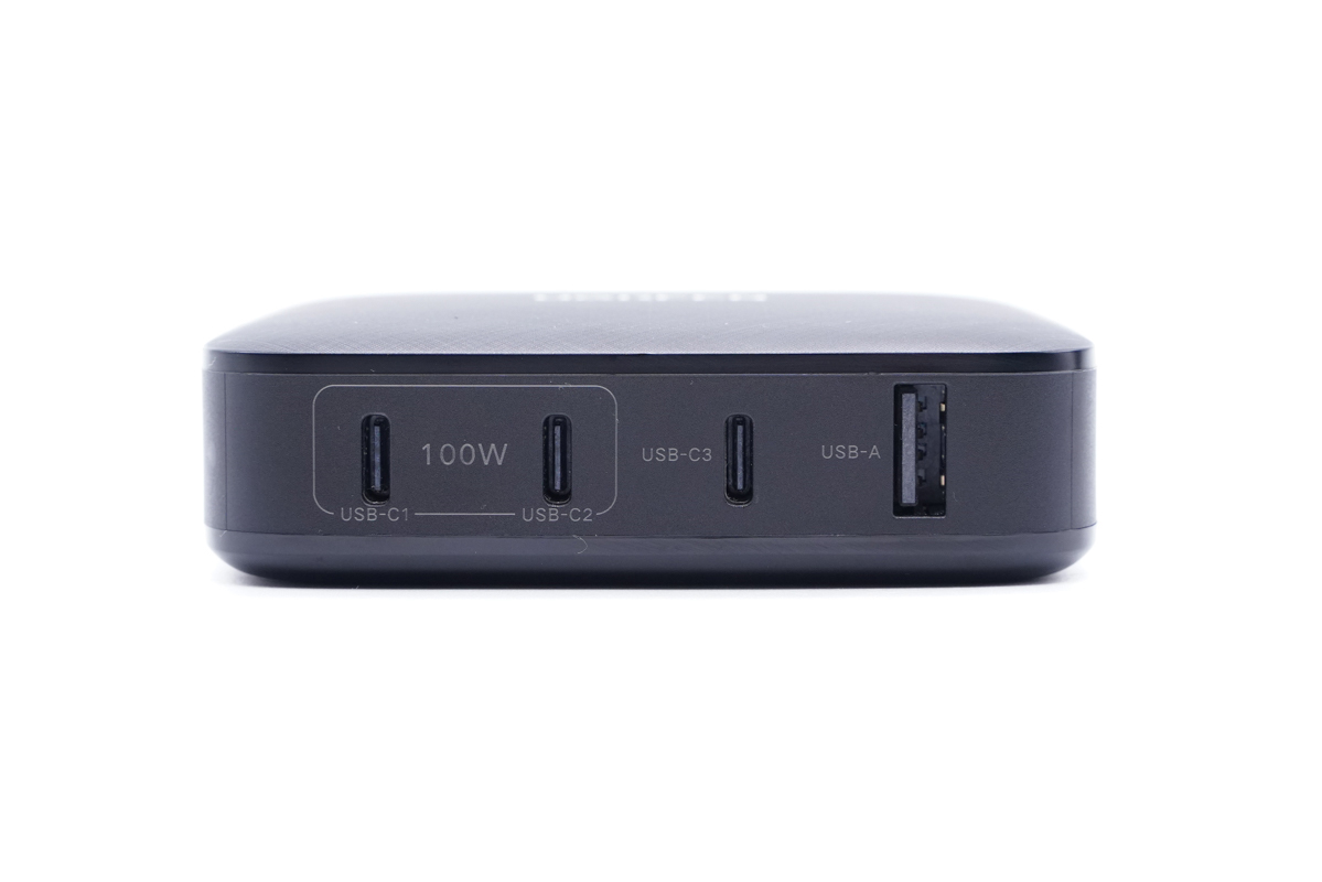 輸出端采用3C1A共4個USB輸出接口,左側2個接口支持100W輸出功率。