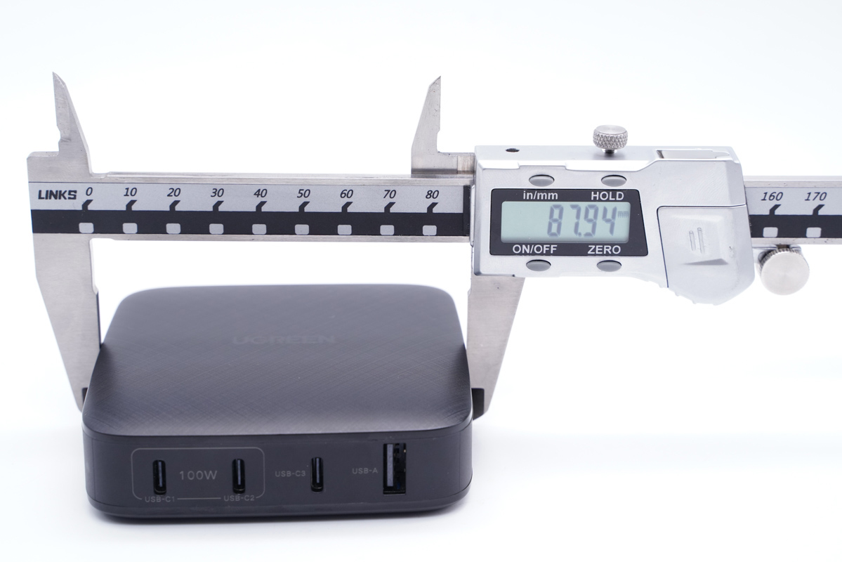 使用卡尺實測充電器的寬度約為87.94mm。
