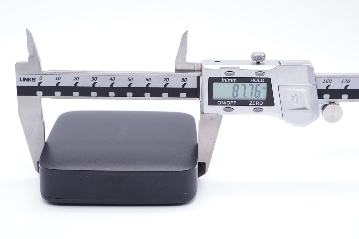由此可以得出充電器的三圍參數為87.94x87.76x25.4mm,充電器的體積約為196.02cm3,以最高輸出100W計算,功率密度約為0.51W/cm3。