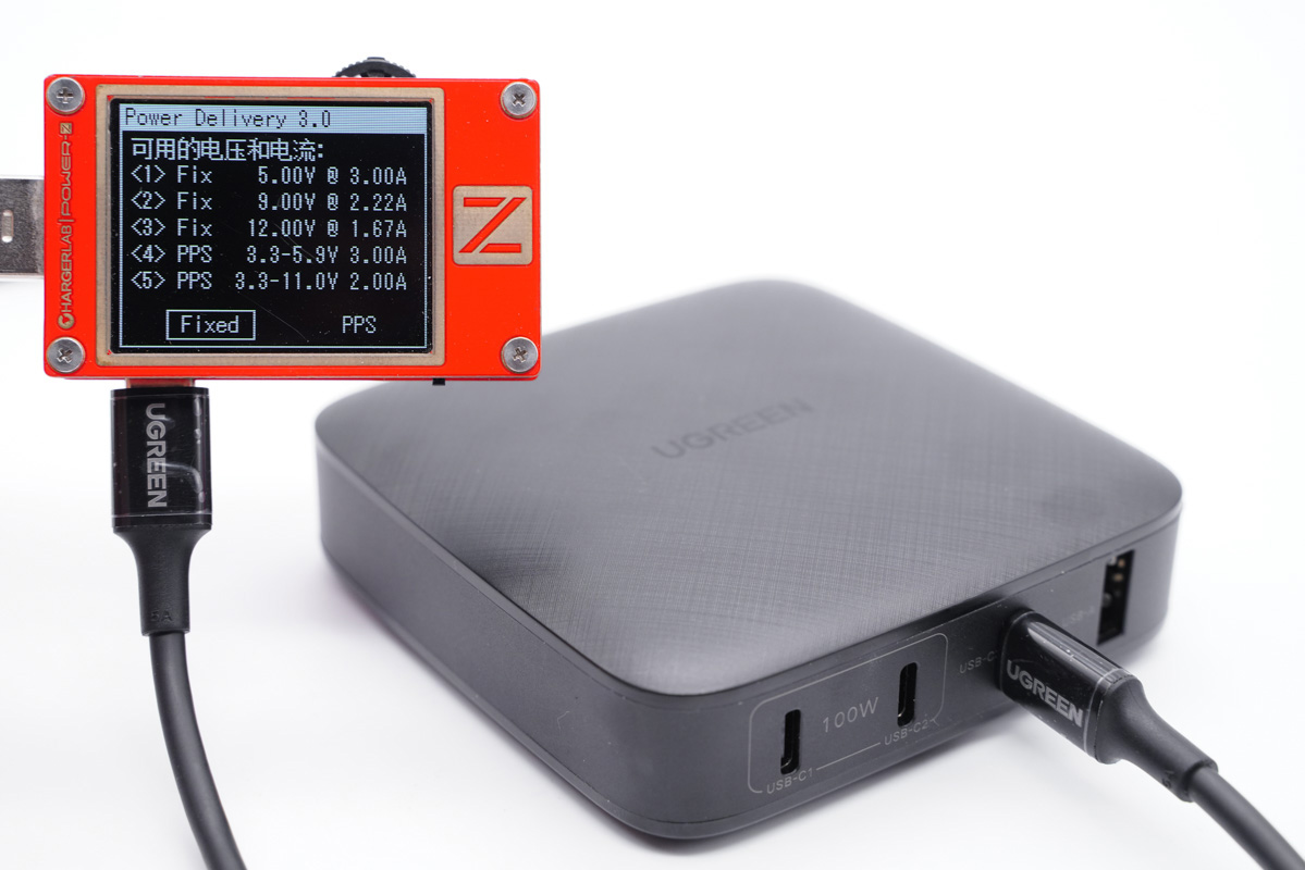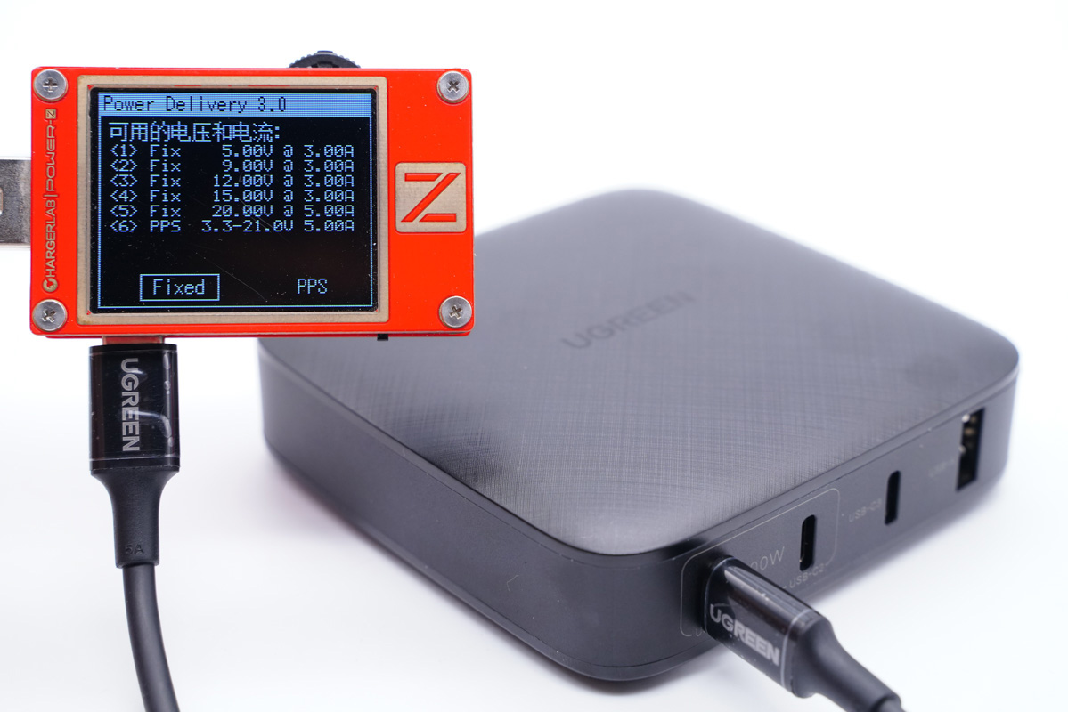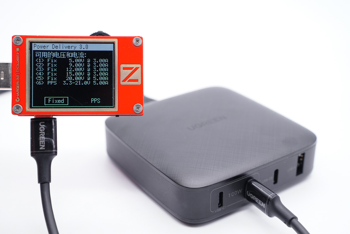 USB-C1支持5V3A、9V3A、12V3A、15V3A、20V5A五個固定電壓檔位以及3.3-21V5A一組PPS檔位。