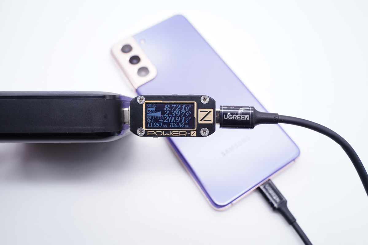 三星S21支持25W PPS快充,使用USB-C1可以為三星S21提供20W+的快充功率。