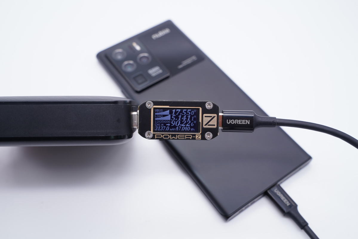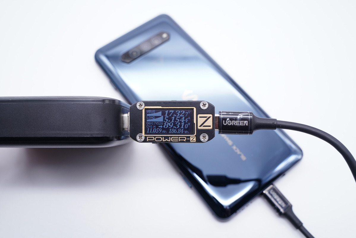 黑鯊4 Pro支持120W快充,使用USB-C1可以為黑鯊4 Pro提供近90W的快充功率,表現不錯。