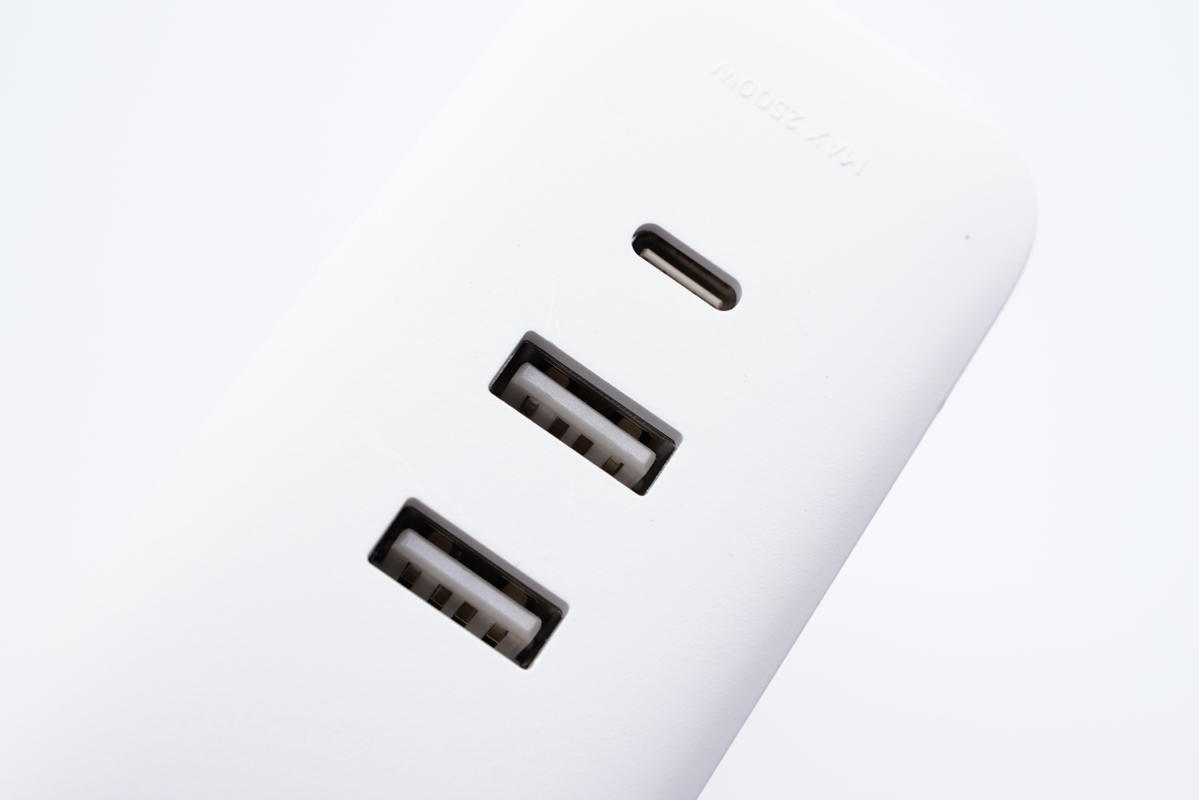 端部設(shè)有2A1C三個USB接口,采用白色膠芯。