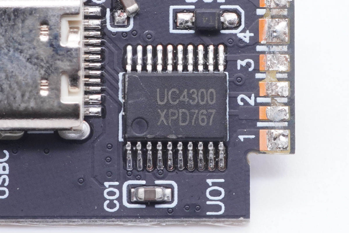 絲印UC4300協(xié)議芯片,用于1A1C接口輸出電壓控制。