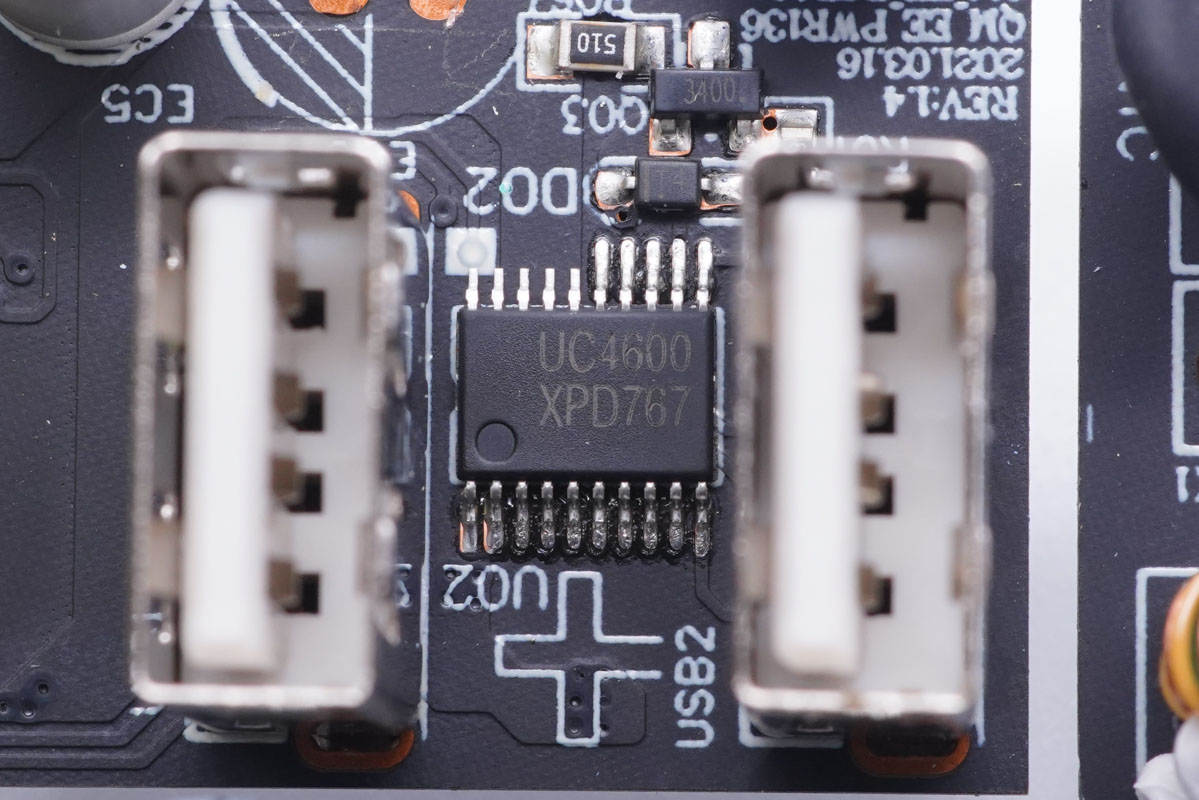 絲印UC4600協(xié)議芯片,用于另一個USB-A口輸出電壓控制。