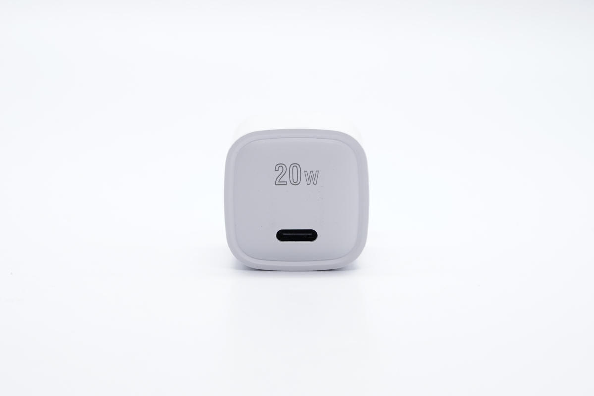 輸出頂面邊緣內凹,配有USB-C接口,接口旁印有20W字樣。