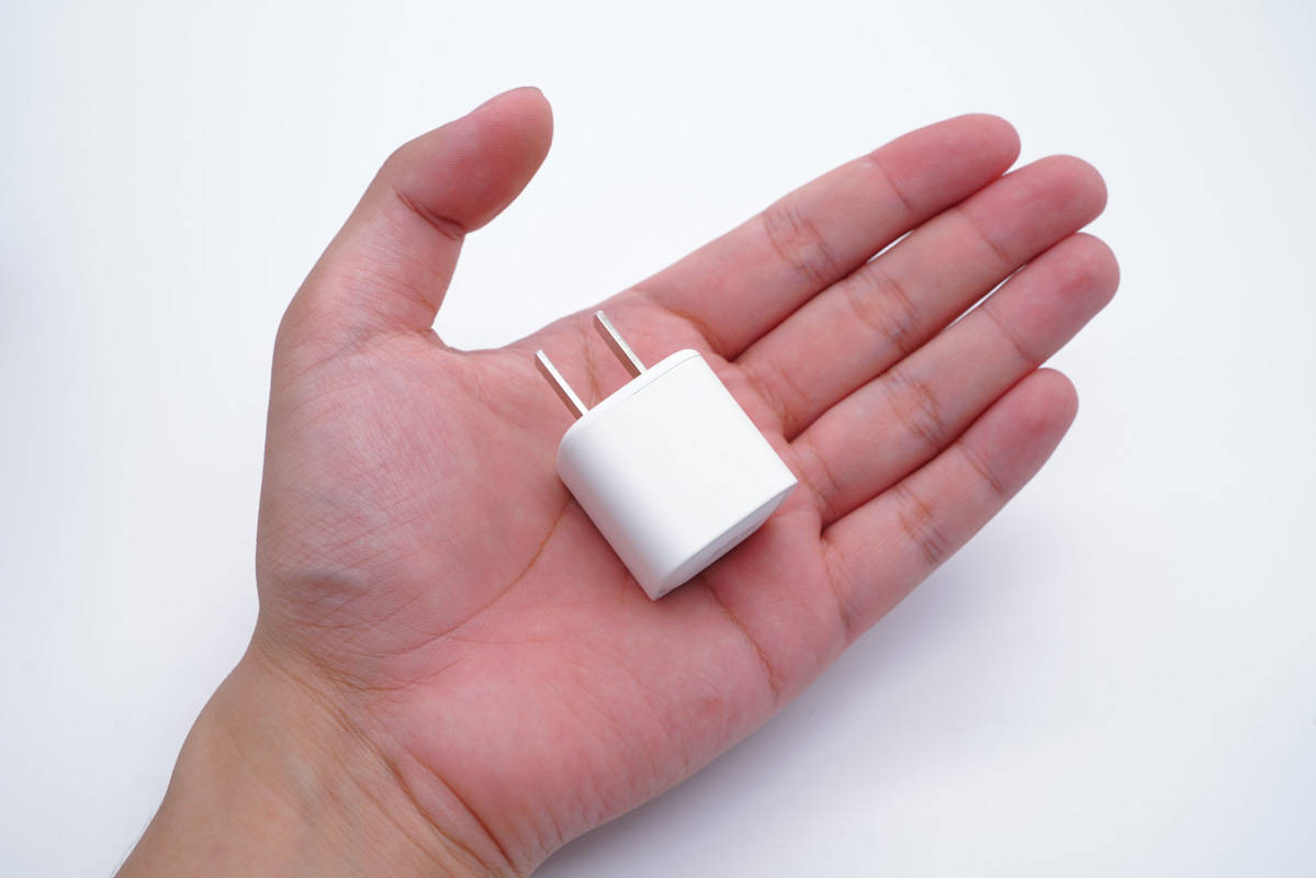 和蘋果20W充電器直觀對比,體積優勢明顯。