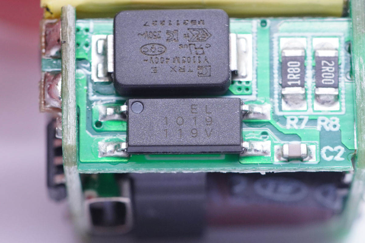 連接小板上設有光耦和貼片Y電容。