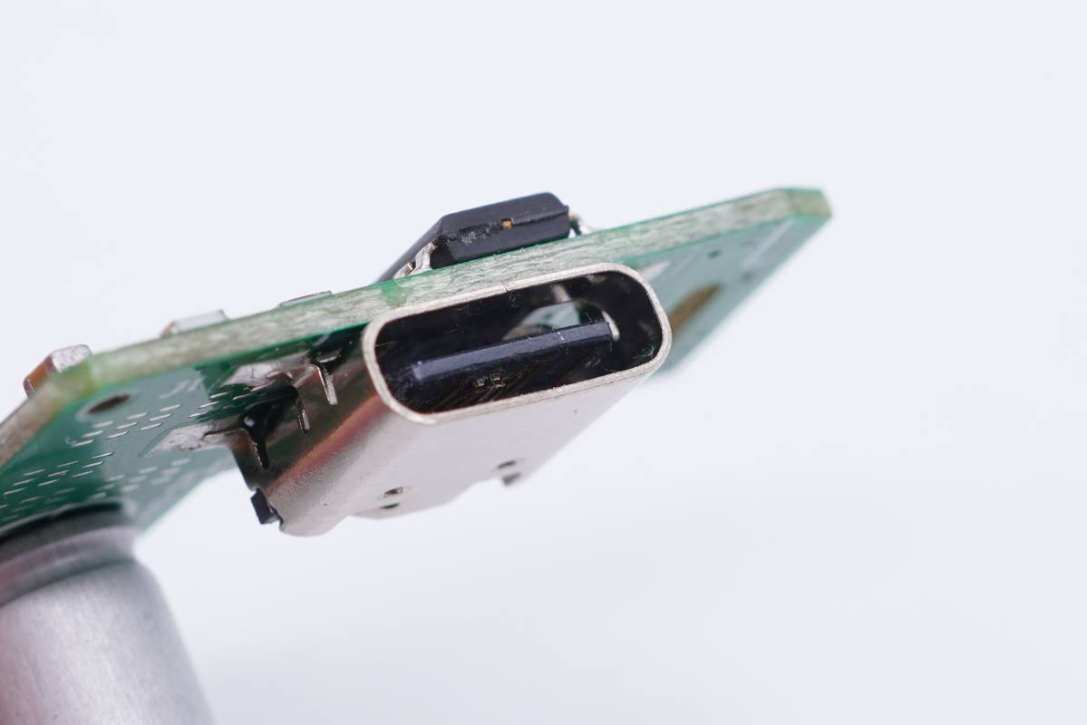 USB-C母座特寫,過孔焊接。