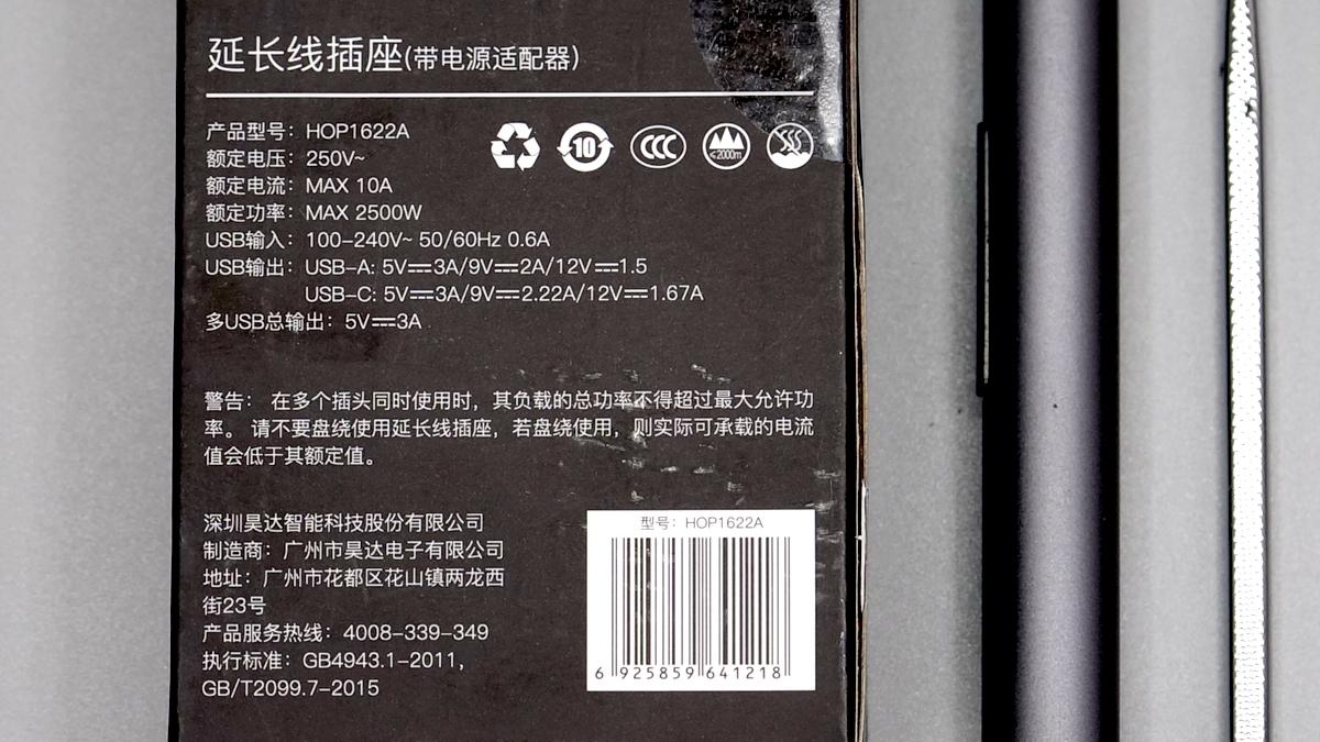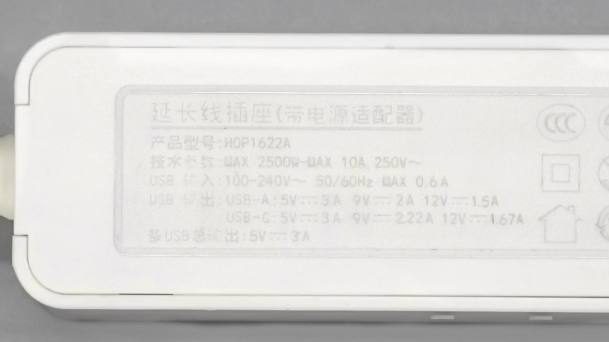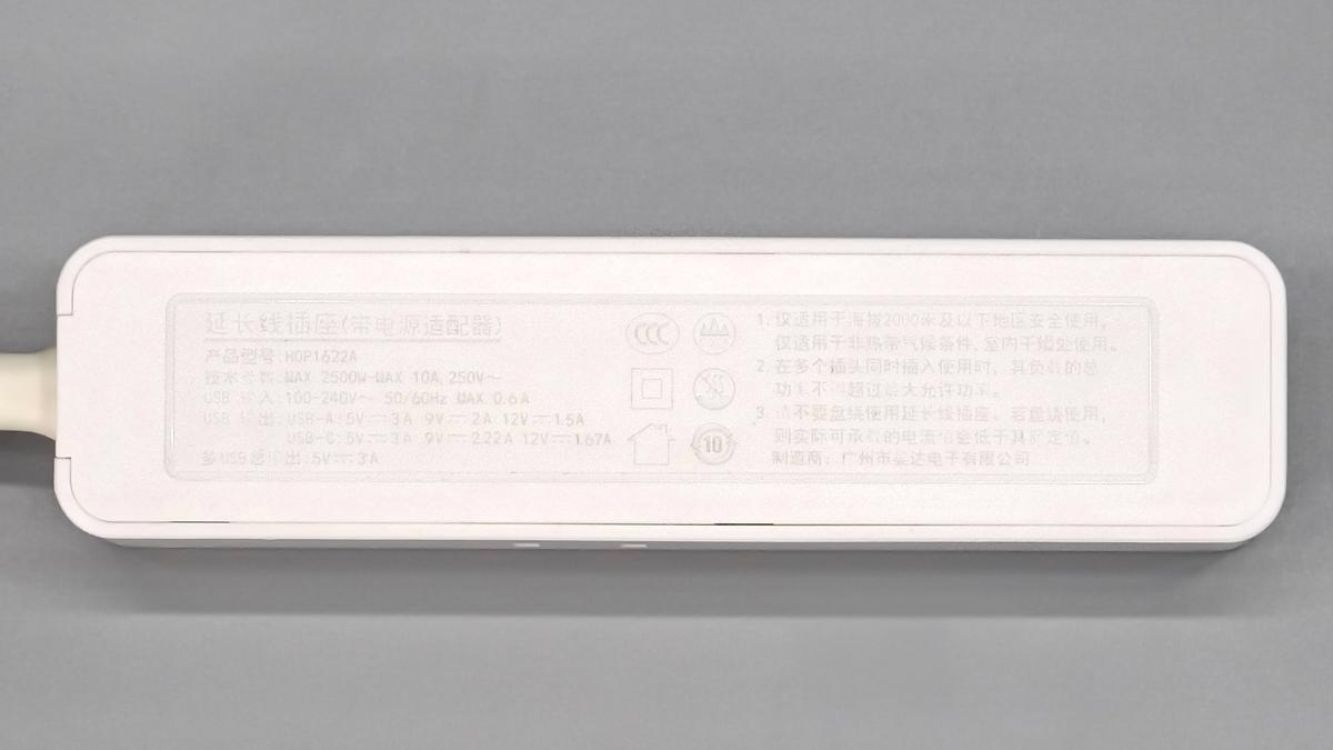 插座底部外殼印有相關參數信息。
