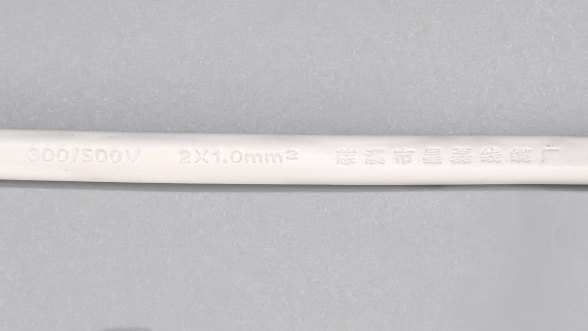電源線規格為2 x1.0mm2,慈溪市星磊線纜廠制造。
