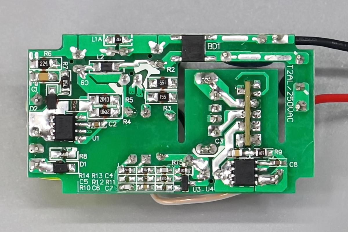 小板背面一覽,設有整流橋和開關電源初次級控制芯片。