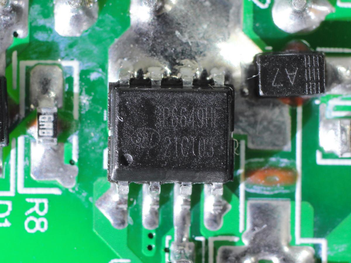 C口母座所在小板背面設有一顆協議芯片。
