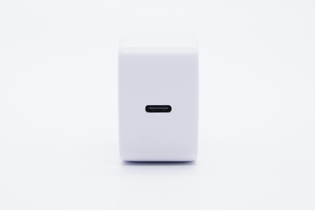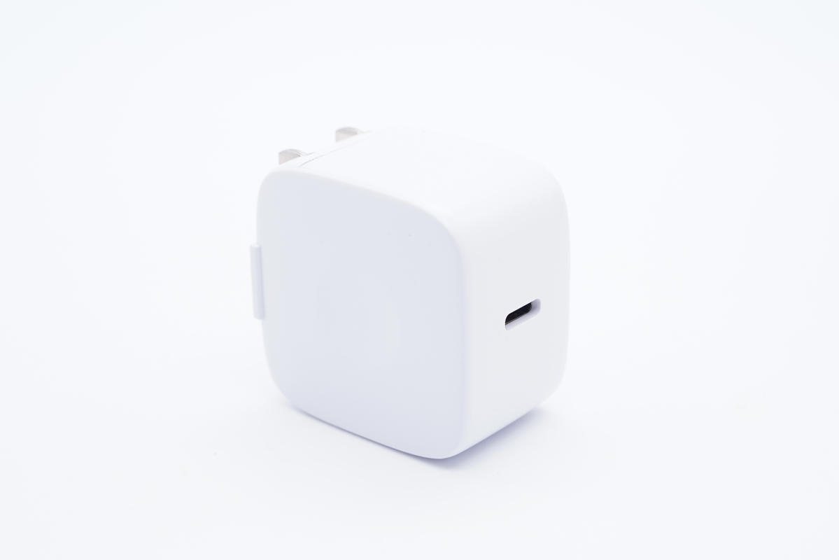 充電器采用方塊造型設(shè)計,端角過渡圓潤。機身殼為白色,整體十分簡潔。