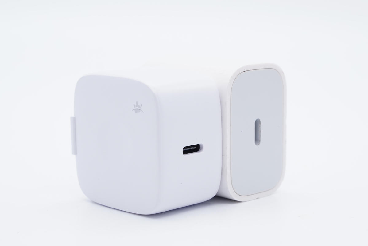 和蘋果20W快充直觀對比,體積相當。