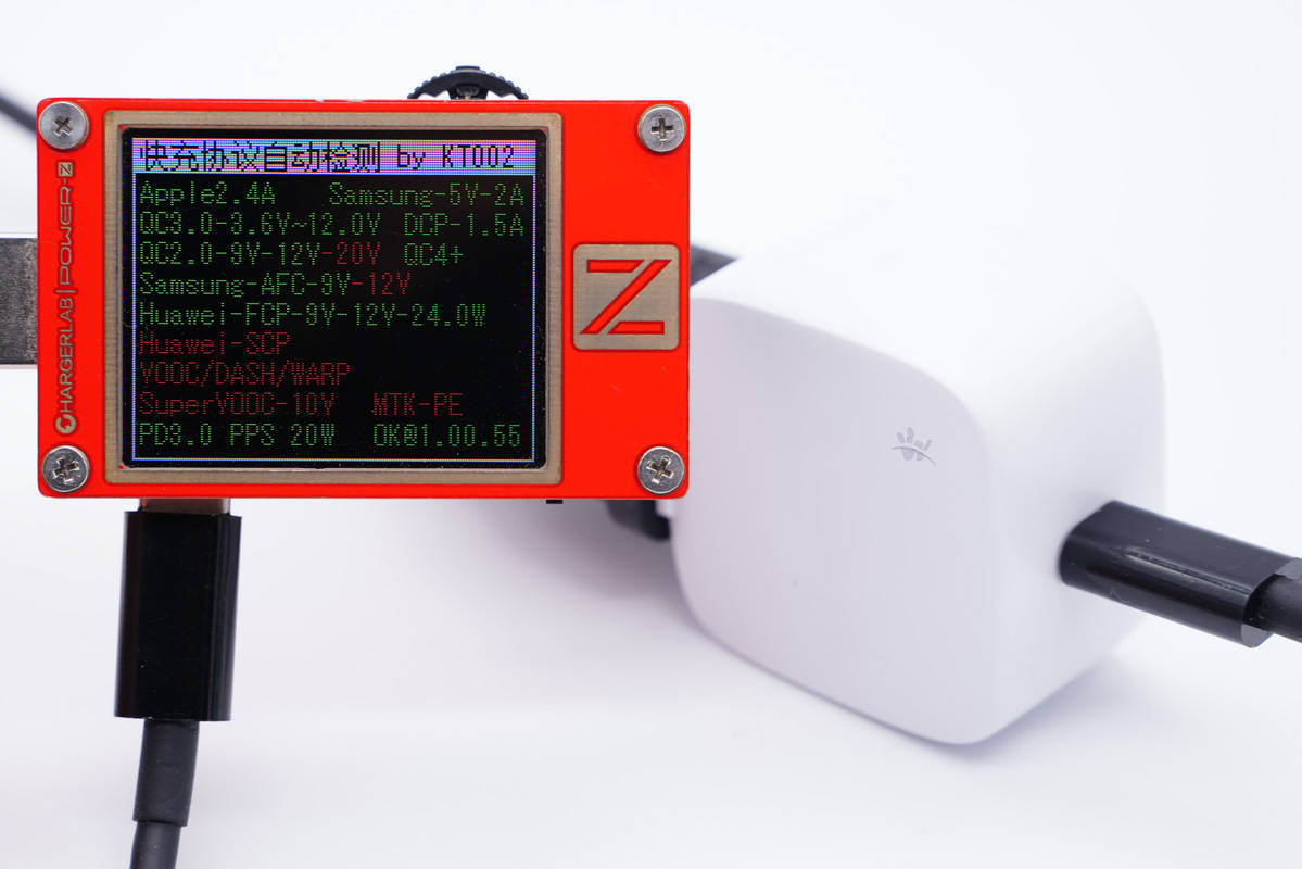 使用ChargerLAB POWER-Z KT002測得USB-C口支持Apple 2.4A、Samsung 5V2A、DCP協(xié)議,以及QC2.0/3.0、AFC、FCP、PD3.0和PPS快充協(xié)議。