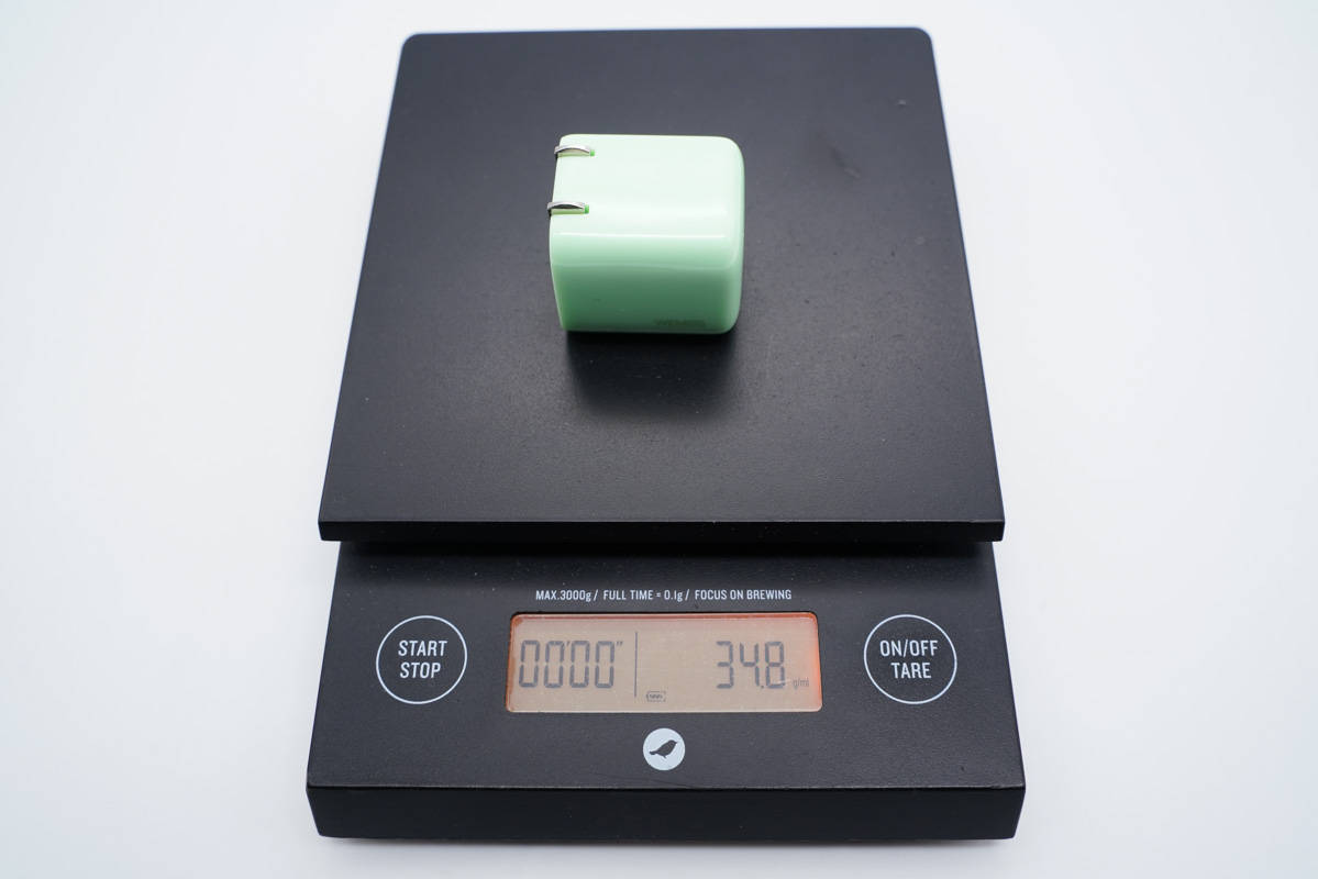 和蘋果20W充電器直觀對比,在配備折疊插腳的情況下,體積優勢仍非常大。