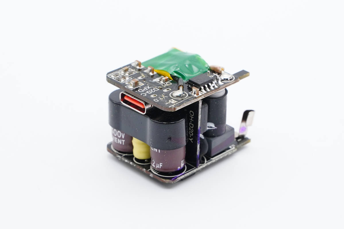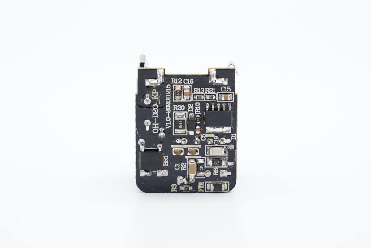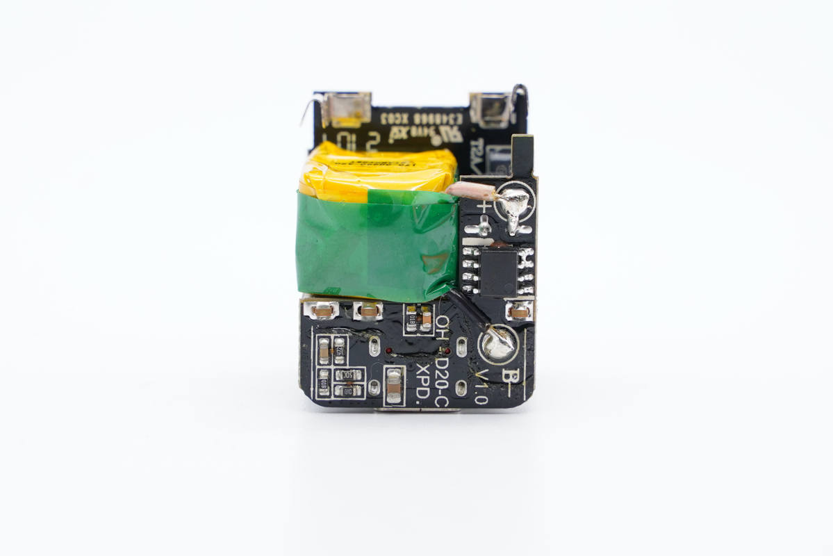 這款充電器主打小巧、便攜以及20W快充,具備PPS電壓檔位,整體兼容性不錯。充電器加上線套裝很便宜,可以說非常的具有性價比。充電頭網通過拆解了解到,PCBA模塊為工字結構,另外打膠加固,初次級濾波電容都做了絕緣處理,細節講究。充電器采用了必易微KP22308WGA主控加MK91738同步整流芯片,還采用了云矽半導體XPD750認證協議芯片,整套方案也很可靠。
