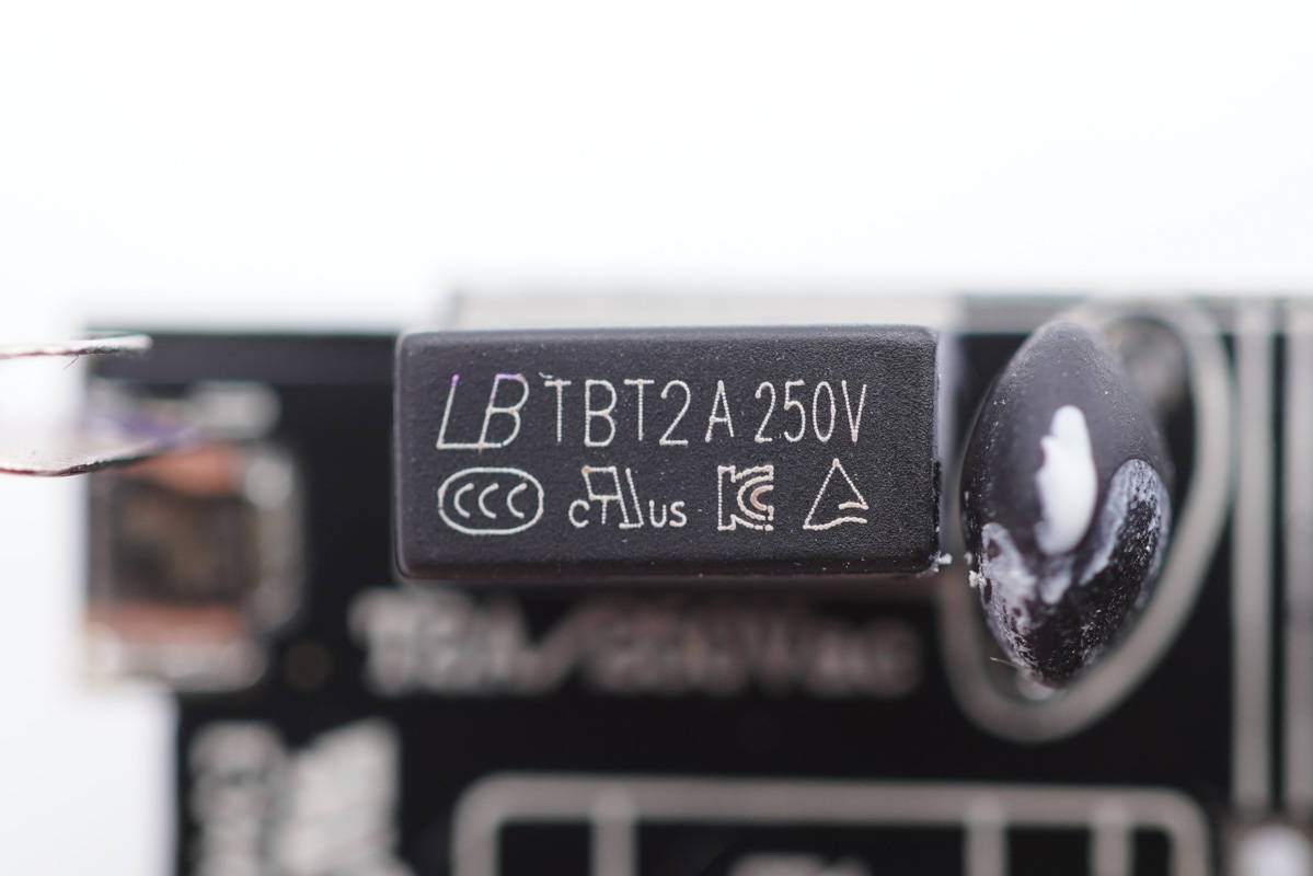 延時保險絲來自藍寶,規格為2A 250V。