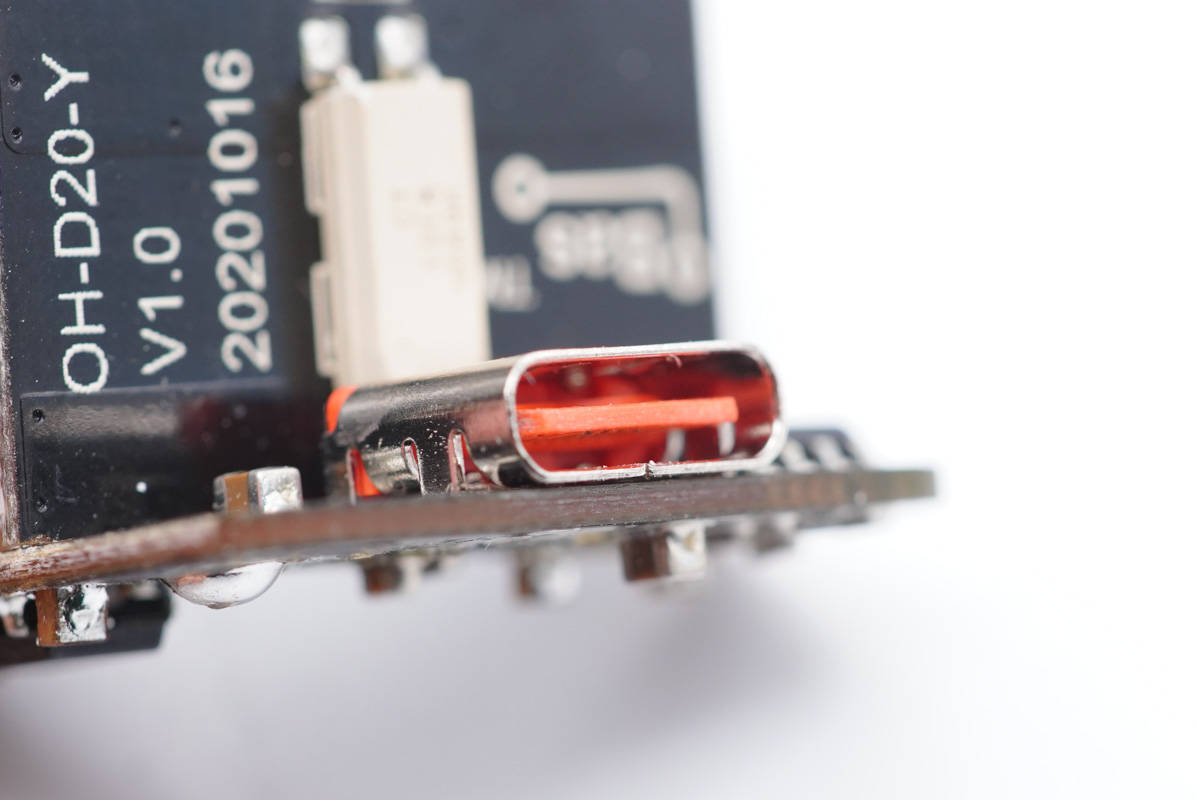 USB-C母座特寫,過孔焊接。