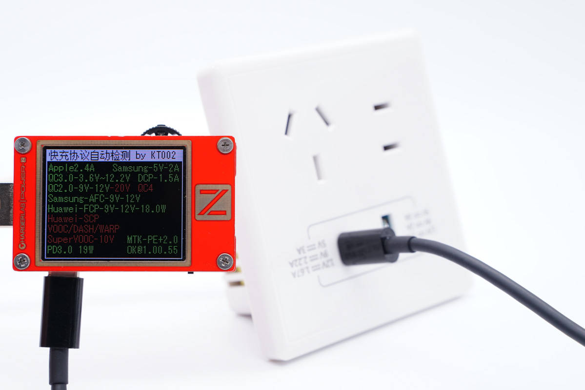 另外使用KT002測得USB-C口支持Apple 2.4A、Samsung 5V2A、DCP協議,以及QC2.0/3.0、AFC、FCP、PE2.0、PD3.0快充協議。