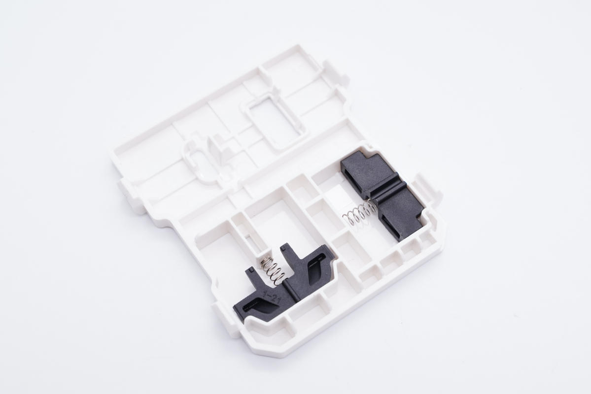 塑料蓋板上設有黑色塑料安全門,通過彈簧進行復位。