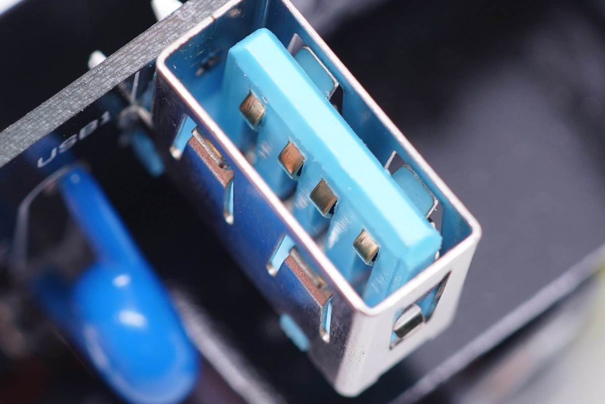 兩個USB接口均采用藍色膠芯,十分經典的配色。