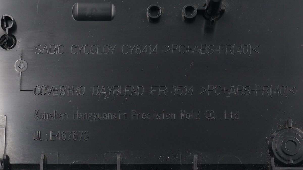 將機身殼拆開,內側有機身殼材質以及生產公司信息。
