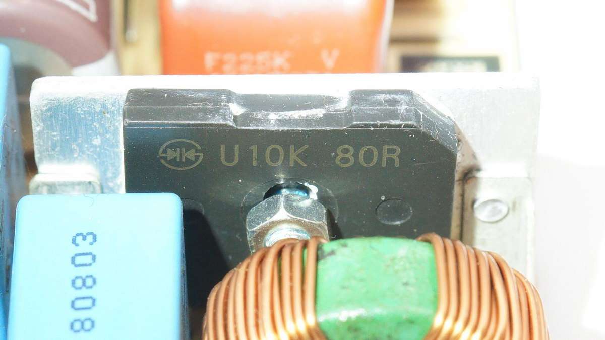整流橋特寫,來自新電元,絲印U10K。