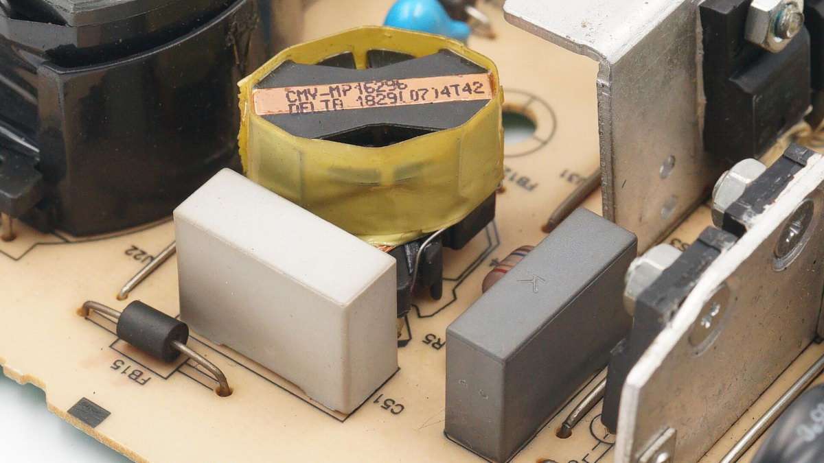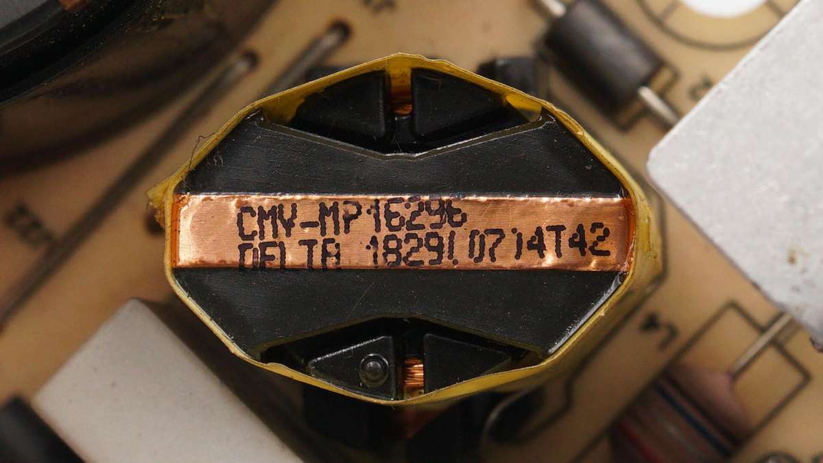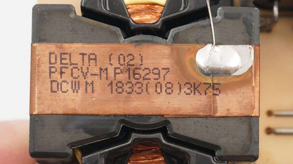 PFC升壓電感特寫,來自臺達,利茲線繞制,磁芯做了接地處理。