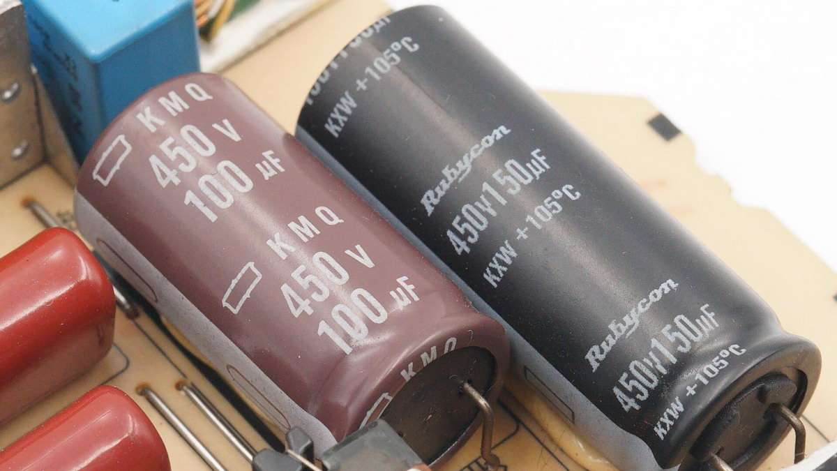 兩顆高壓濾波電解電容分別是紅寶石和黑金剛KMQ系列,規格對應為450V 150μF和450V 100μF。