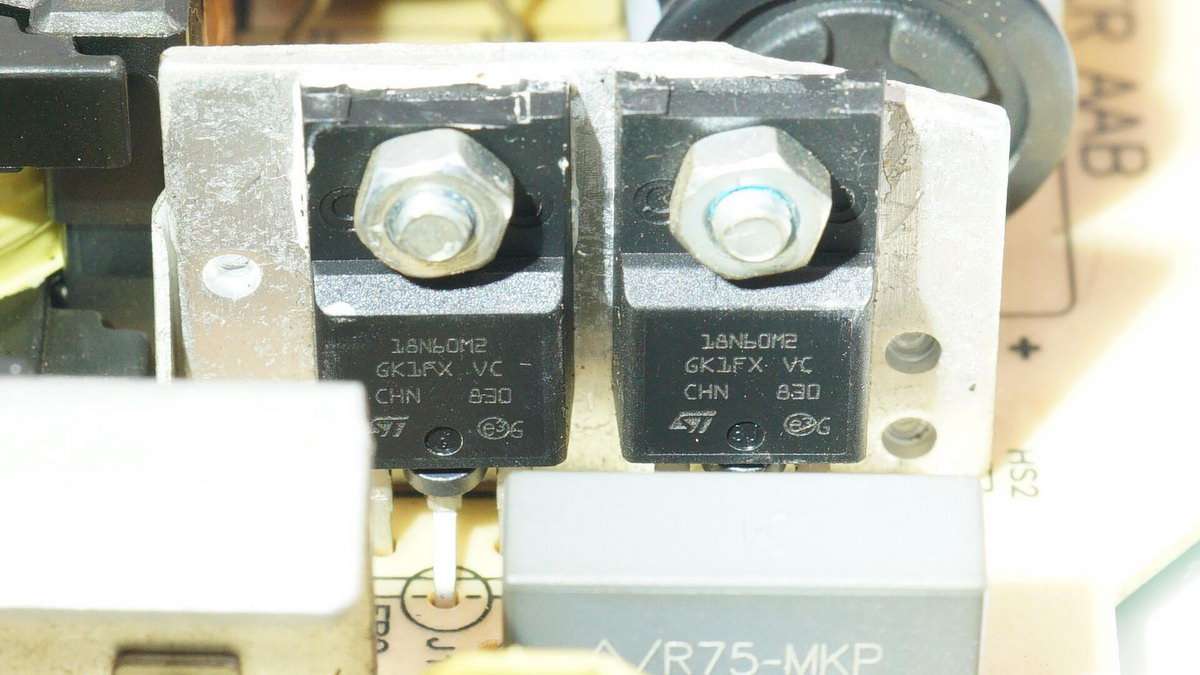 兩顆LLC開關管是ST STF18N60M2,耐壓600V,導阻255mΩ,TO220FP封裝。