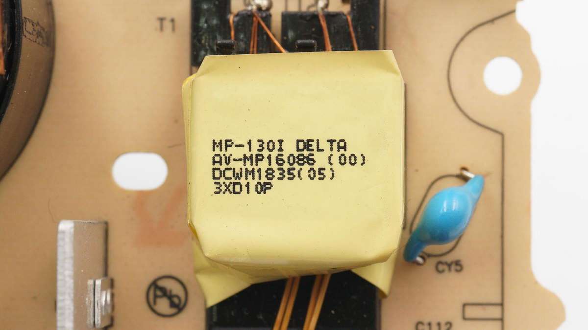 電源由知名大廠臺達代工,采用LLC電源架構,此外還設有輔助電源供電電路。采用了臺達定制主控芯片,其它核心控制器來自安森美、MPS,MOS管來自意法半導體和英飛凌,采用日系紅寶石和黑金剛電容濾波,整體的用料可謂是相當豪華。