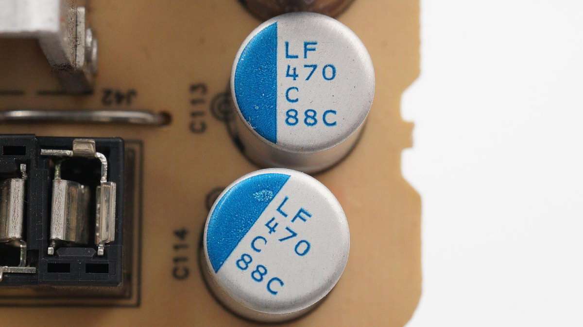 兩顆濾波固態電容特寫。