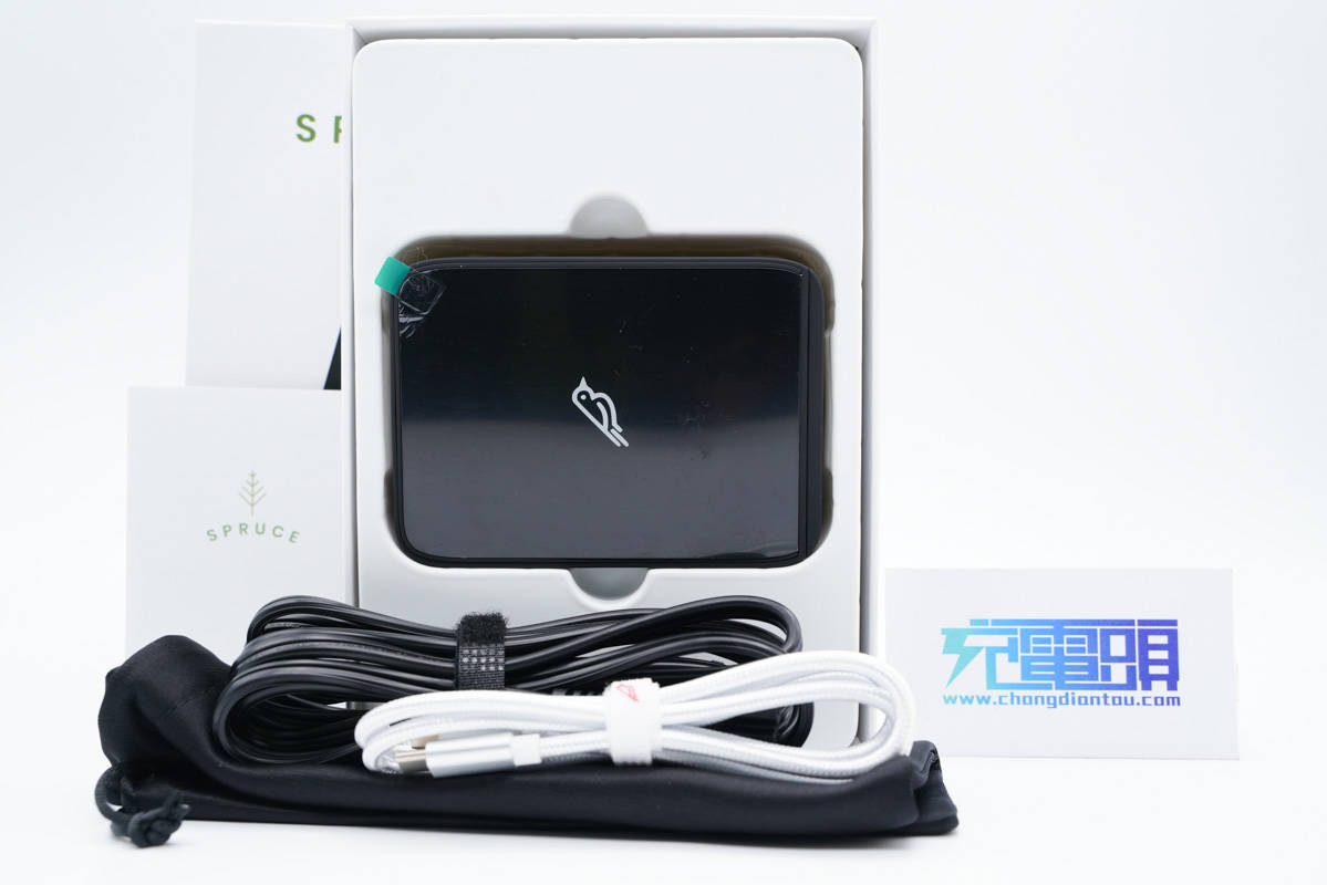 包裝內(nèi)含充電器、電源線、CC數(shù)據(jù)線、收納袋和使用說明書。