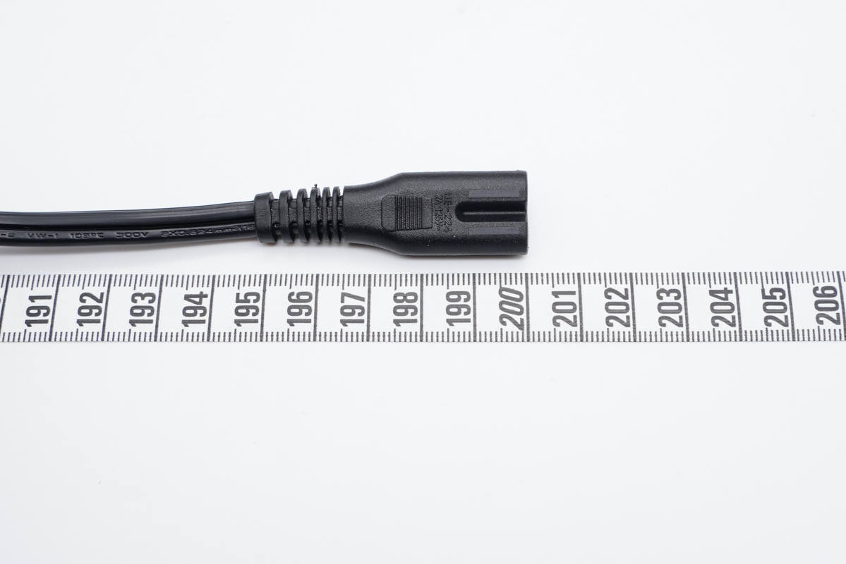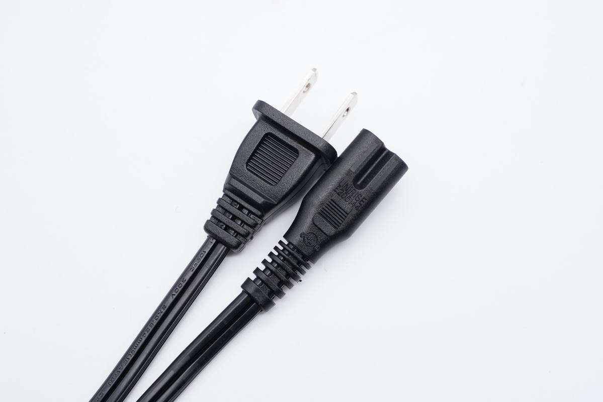 電源線兩端分別是雙腳插頭和8字插頭。