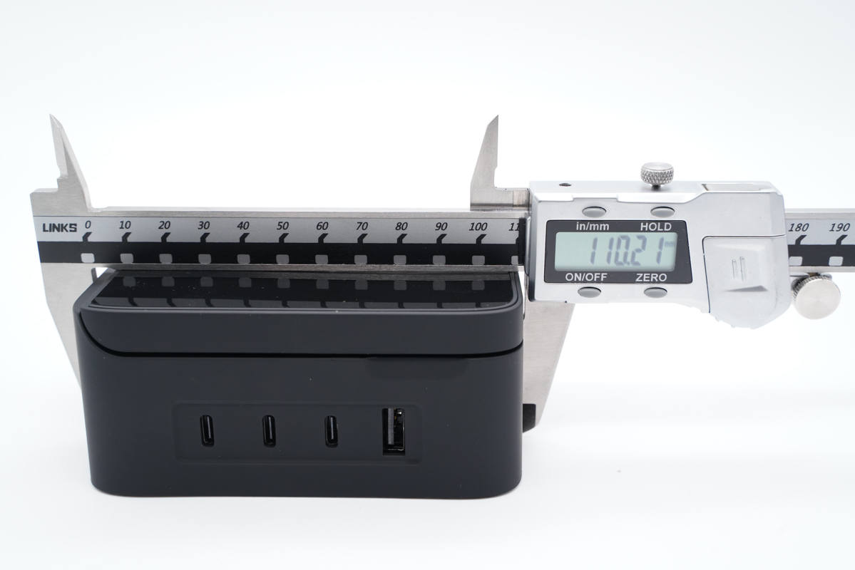 測得充電器模塊長度為105.19mm。