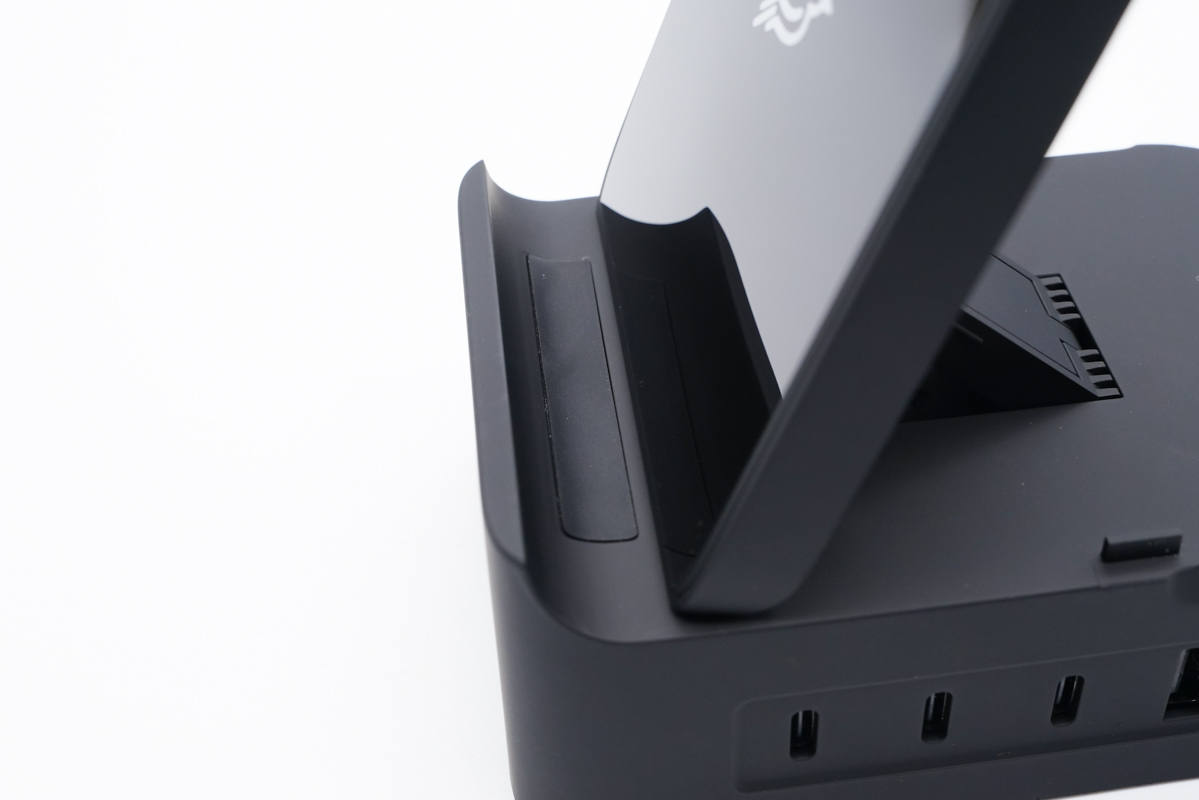 將無線充電板取出即可搖身一變成為立式無線充底座,而且是不僅僅支持無線充,底座USB口還能給設(shè)備進(jìn)行最大100W快充,最多可同時給五臺設(shè)備充電,簡直是桌面充電神器。
