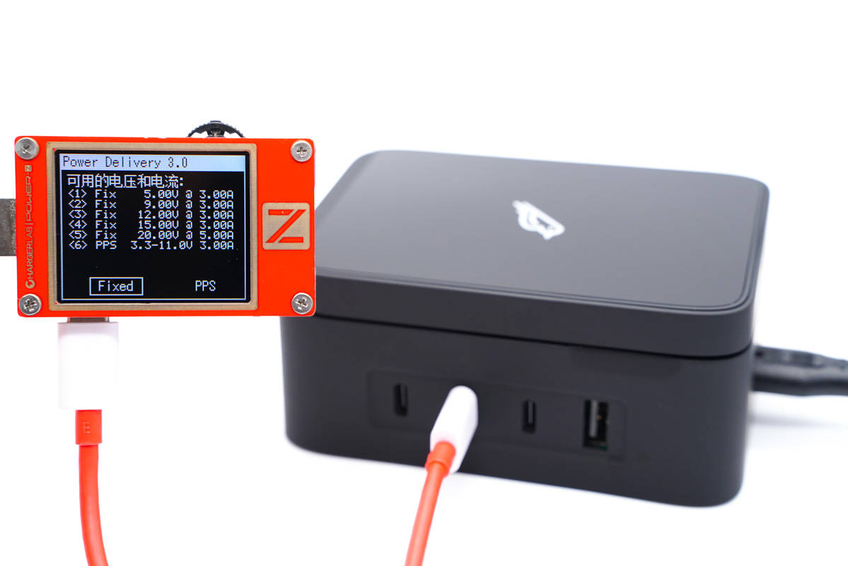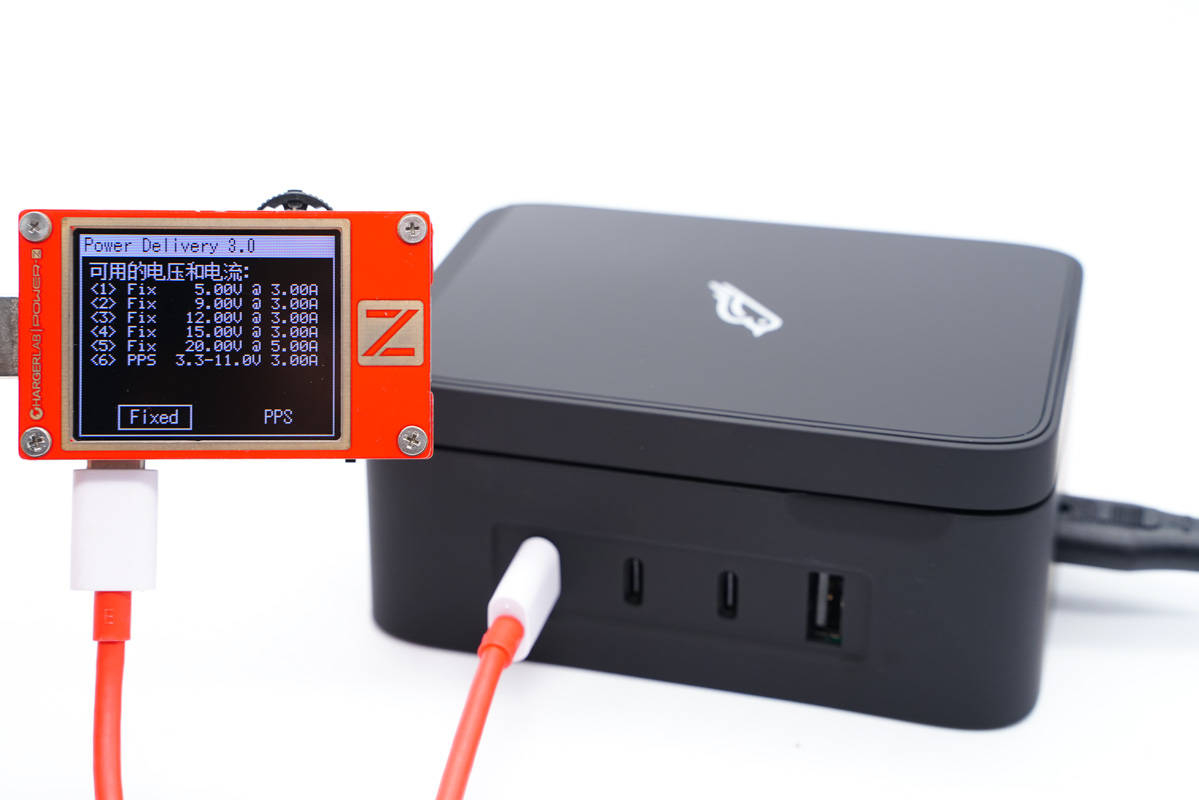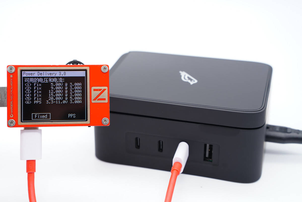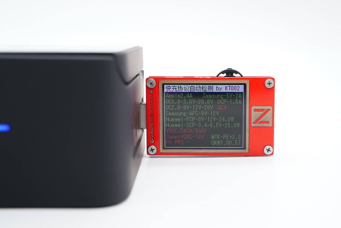使用ChargerLAB POWER-Z KT002測得USB-C1口支持Apple 2.4A、Samsung 5V2A、DCP協(xié)議,以及QC2.0/3.0、AFC、FCP、SCP、PE2.0、PD3.0、PPS多個快充協(xié)議。
