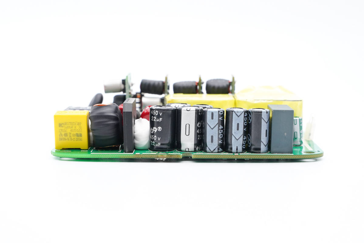 四顆小的電容規(guī)格為450V 10μF,濾波電容容量共計106μF。