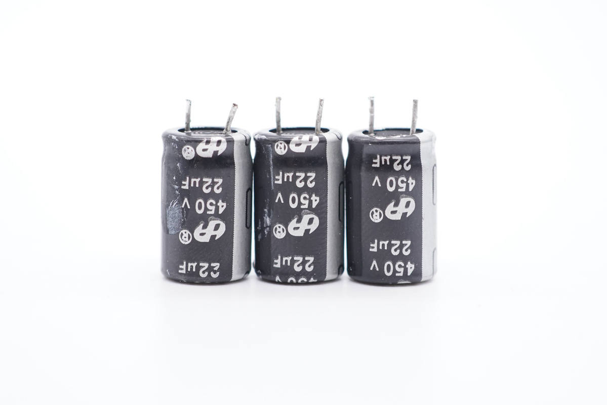 三顆大的高壓濾波電解電容規(guī)格為450V 22μF。