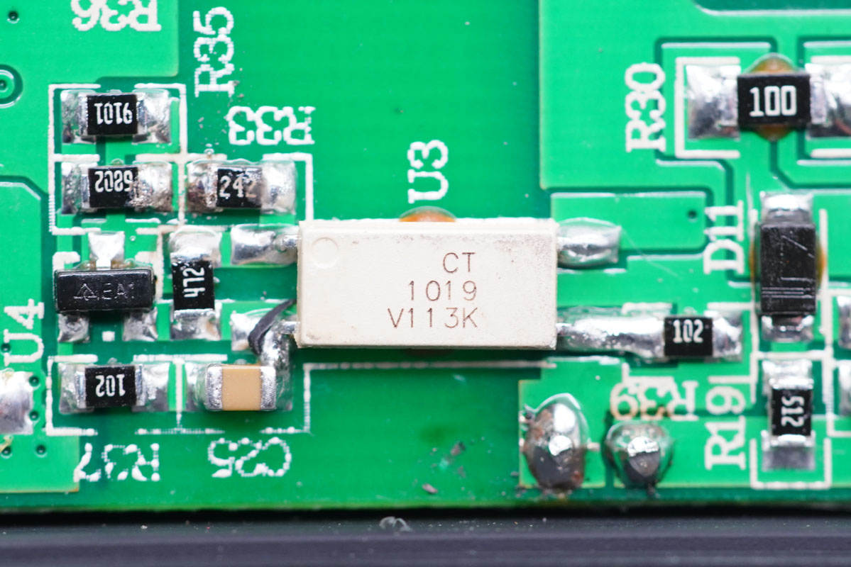 兩顆輸出濾波固態(tài)電容來自福建云星電子有限公司,規(guī)格為25V 680μF。“YX”牌固態(tài)電容專門針對USB PD快充設(shè)計,在105℃的工作環(huán)境下仍能保證2000小時的壽命,同時兼具耐高溫、耐大紋波、低ESR等特性。