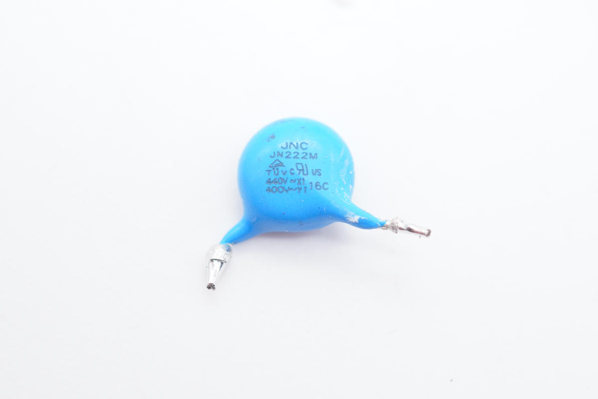 另一顆Y電容特寫,兩顆均來自JNC東莞嘉耐電子有限公司。