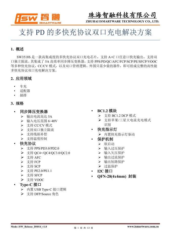 智融SW3518S資料信息。