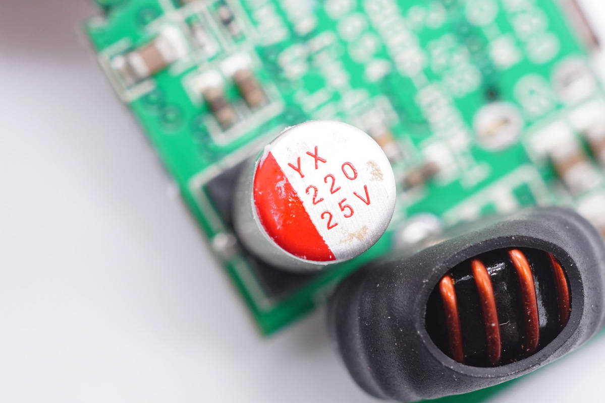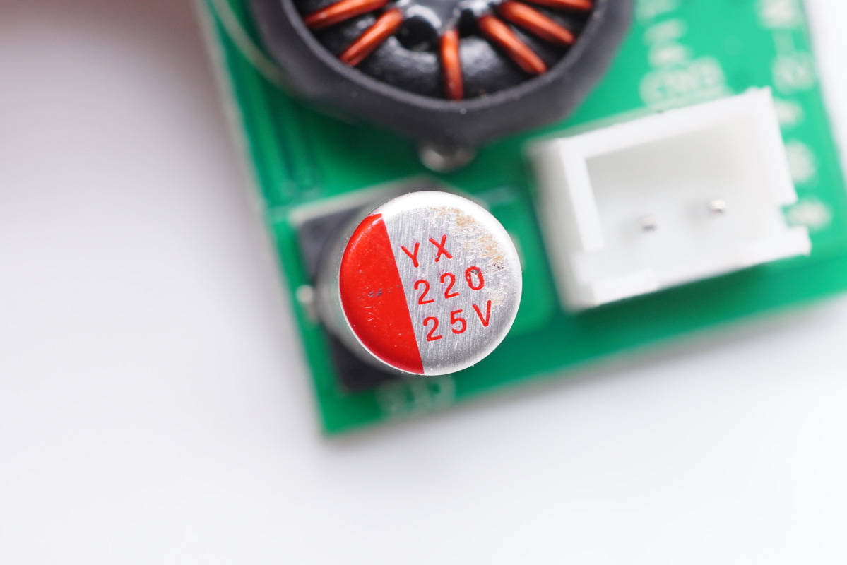 濾波電容特寫,規(guī)格為25V 220μF。