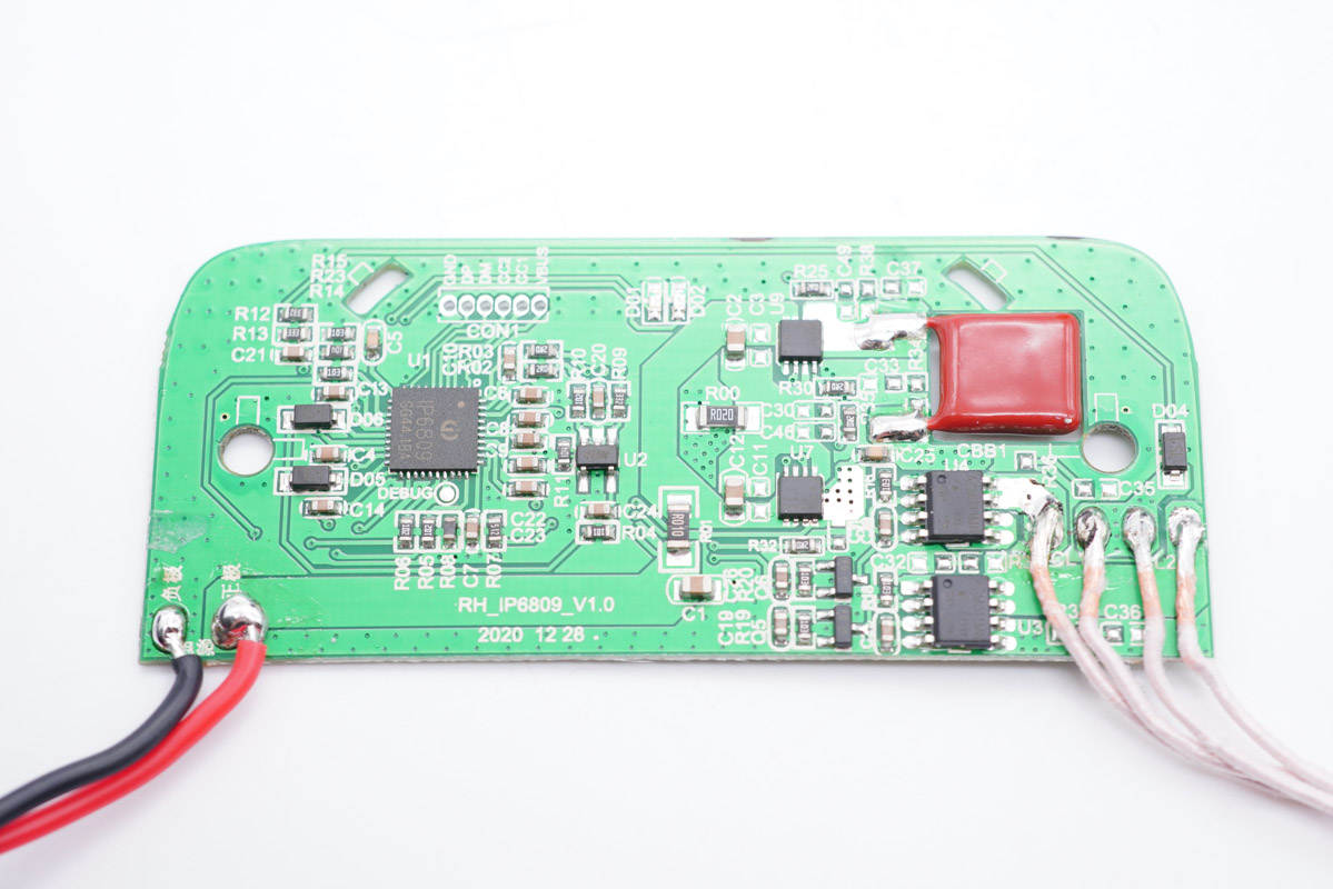 另外拆開無線充電板發(fā)現(xiàn),無線充方案采用的是英集芯IP6809,集成度高。總的來說產(chǎn)品用料不錯。