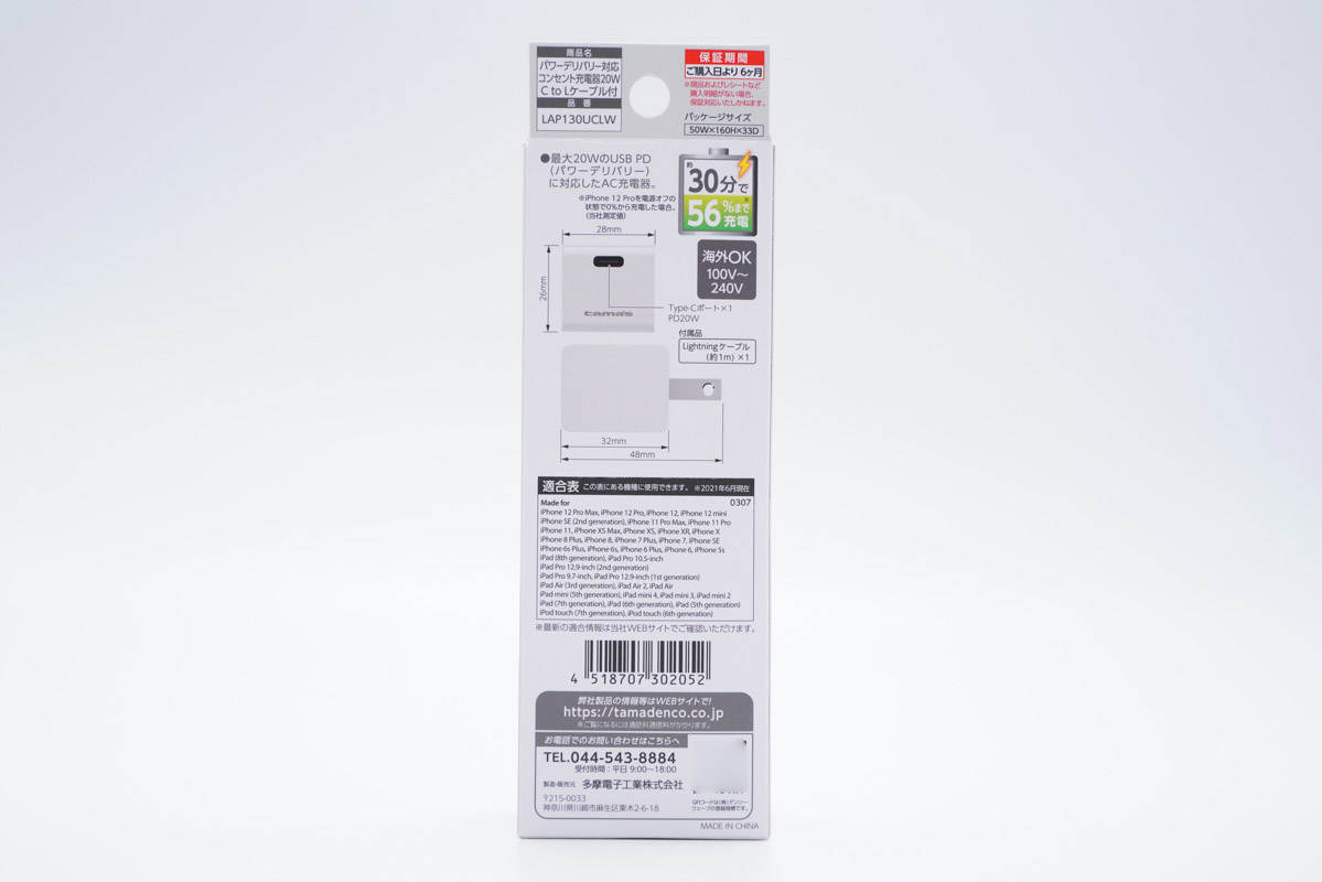 最近充電頭網(wǎng)拿到了一款tamas品牌的20W快充套裝,附帶一條1m長的C-Lightning線。據(jù)了解,這款產(chǎn)品主要在日本市場售賣,且已通過蘋果MFi認(rèn)證,可全面滿足iPhone、iPad等設(shè)備充電需求,當(dāng)然,充iPhone 12 Pro新機(jī)可半小時(shí)充56%電量也是沒問題的。