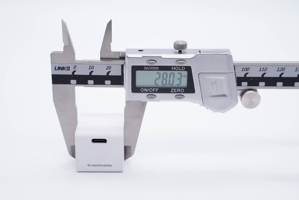 輸出端一側(cè)配備單USB-C接口,黑色膠芯不露銅,另一側(cè)印有tamas品牌。