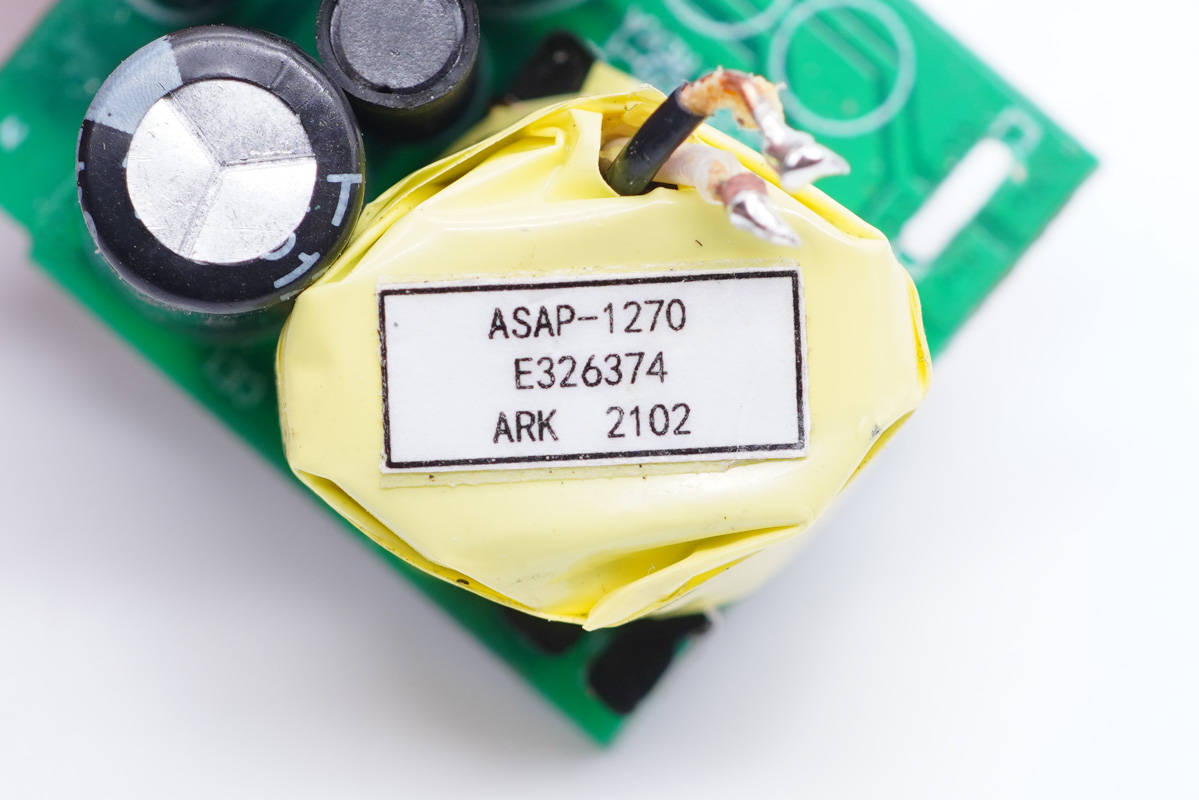 連接小板上的貼片Y電容來自四川特銳祥科技股份有限公司,具有體積小、重量輕等特色,非常適合應(yīng)用于氮化鎵快充這類高密度電源產(chǎn)品中。