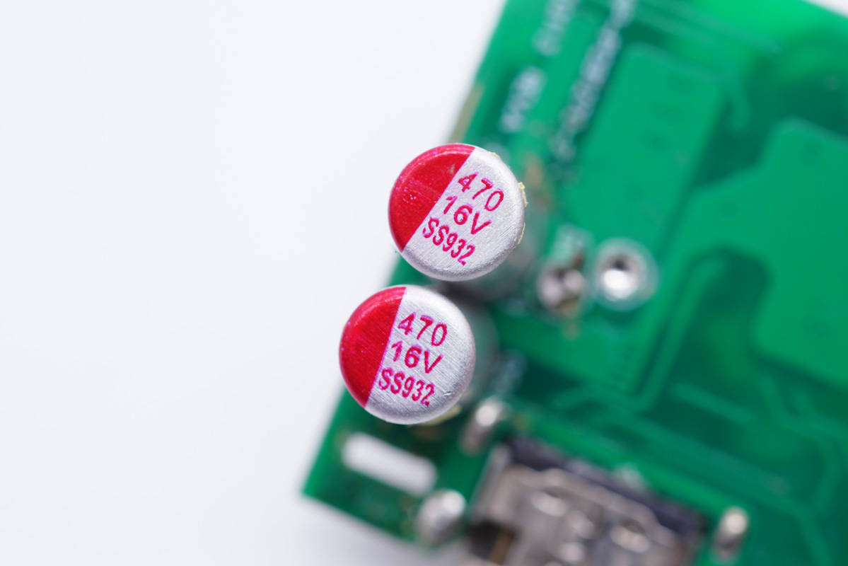 輸出濾波固態(tài)電容特寫,兩顆規(guī)格都是16V 470μF。
